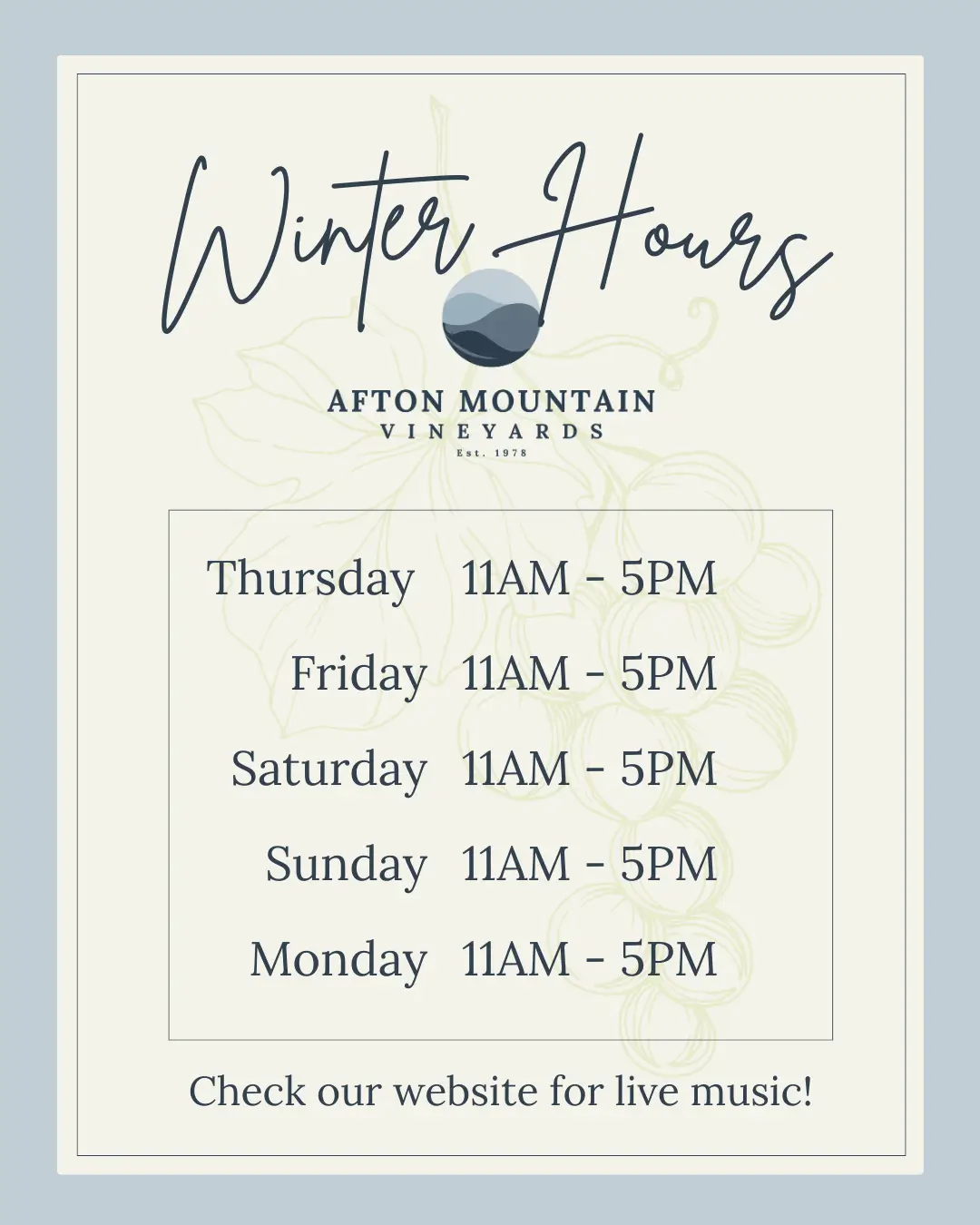 Enjoy a special plating of 4 gourmet chocolates paired with 4 AMV wines! Laurie will be onsite in the Tasting House to answer all your questions, with additional chocolates for purchase!