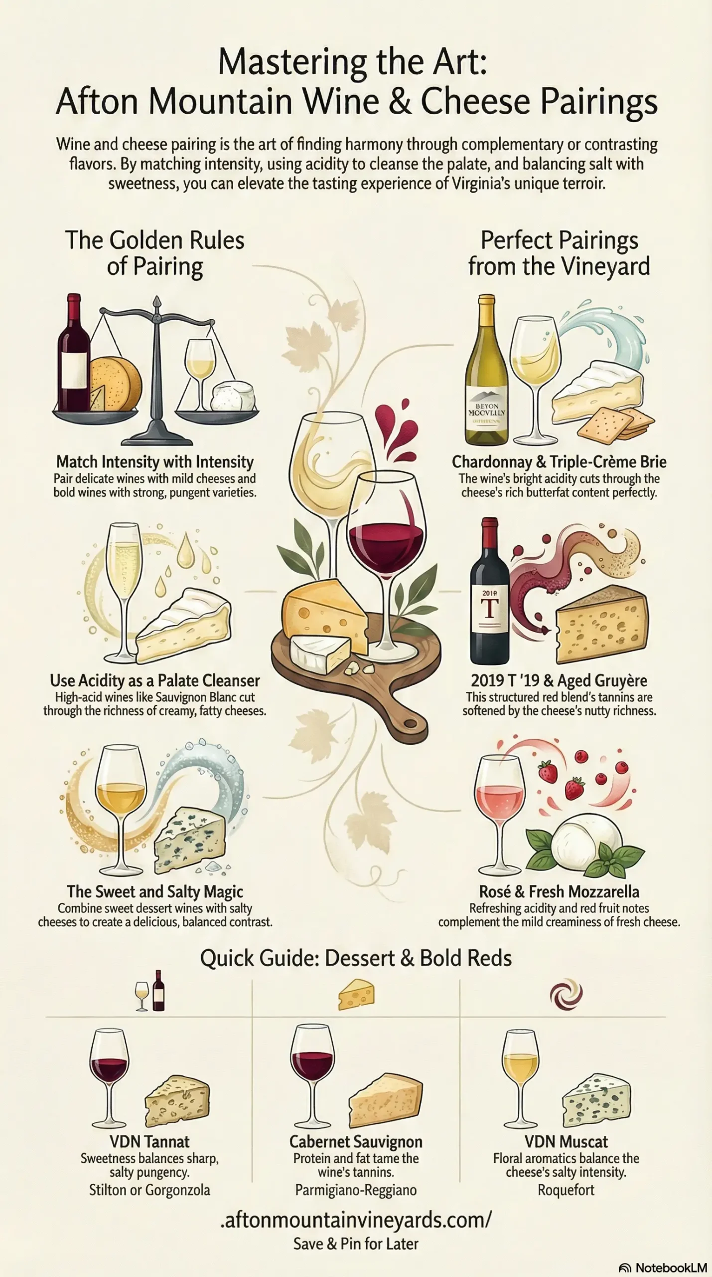The art of pairing wine and cheese is ultimately about experimentation and enjoyment. While these guidelines provide a helpful starting point, your palate is the final judge. Visit Afton Mountain Vineyard’s tasting room to explore these wines firsthand, and don’t hesitate to ask for pairing suggestions.